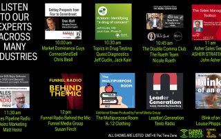 10:30 Market Dominance Guys from ConnectAndSell hosted by Corey Frank and Chris Beall Guest: Orin Klaff Topic: Diagnosing Discovery Call Failures 11 ALIve Longevity Podcast from Asher Longevity Institute hosted by John Asher Topic: New [...]